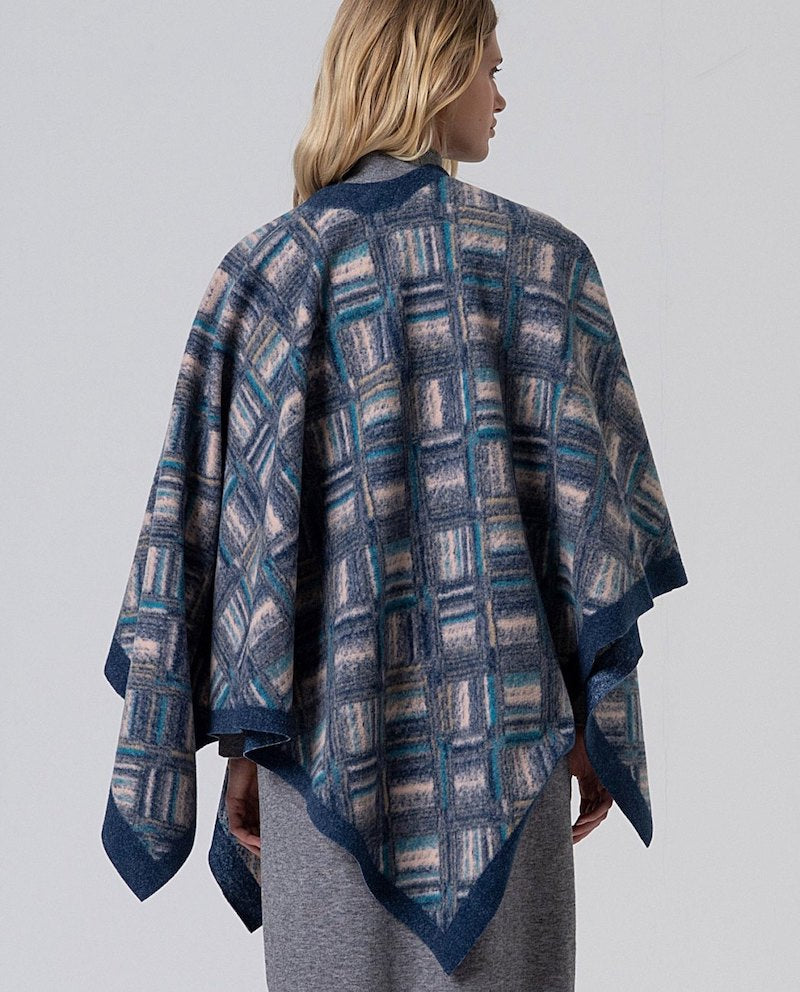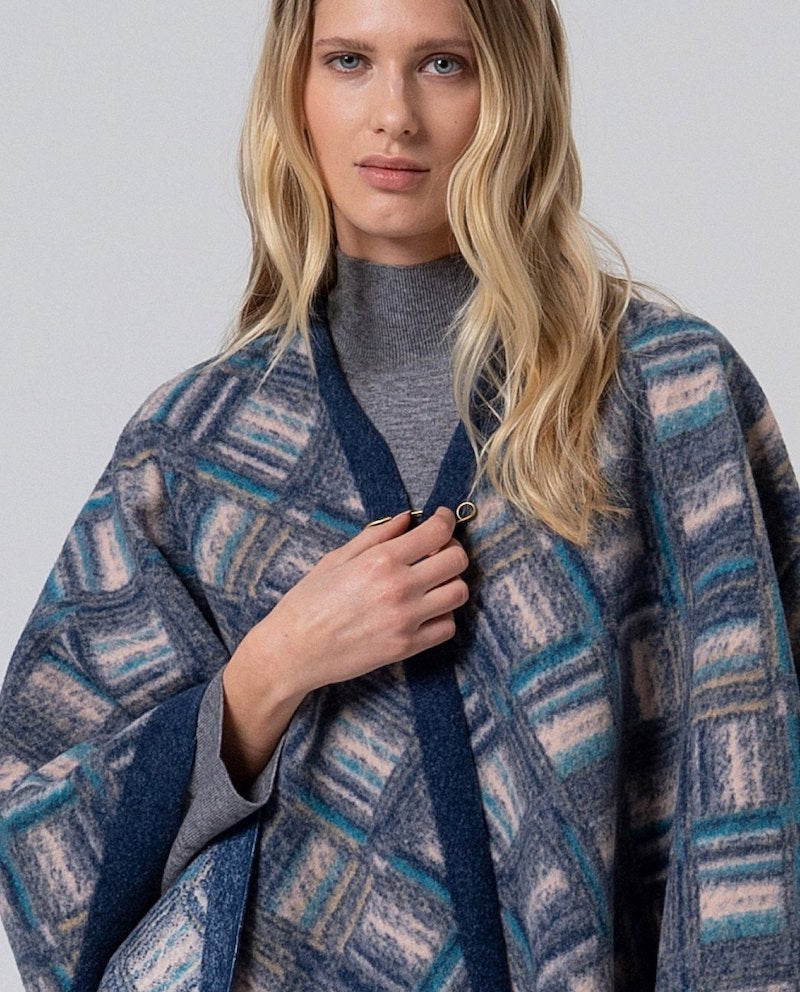 Poncho en jacquard bleu avec épingles à nourrice 35POCO831 51