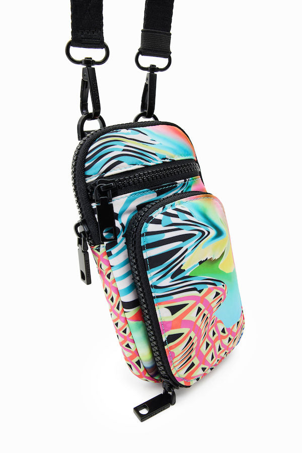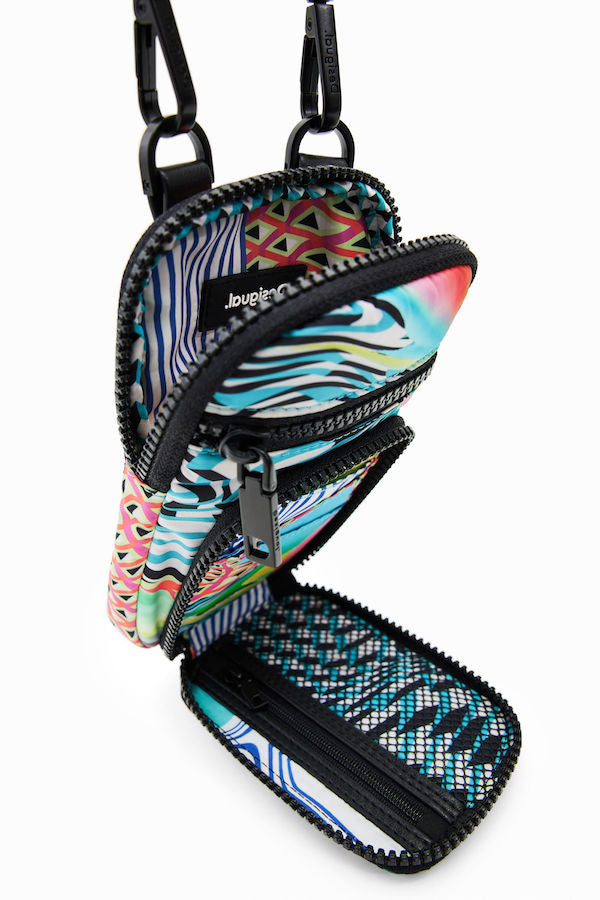 Le porte monnaie étui de de téléphone de la marque Desigual se compose d'une bandoulière pour un porté sacoche, de poches zippées, d'une bandoulière amovible et une fermeture éclair.