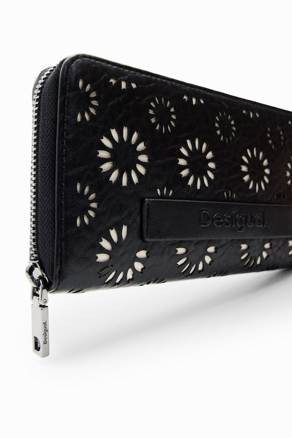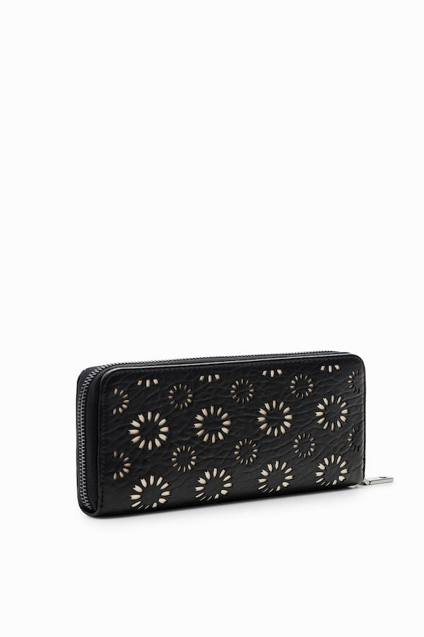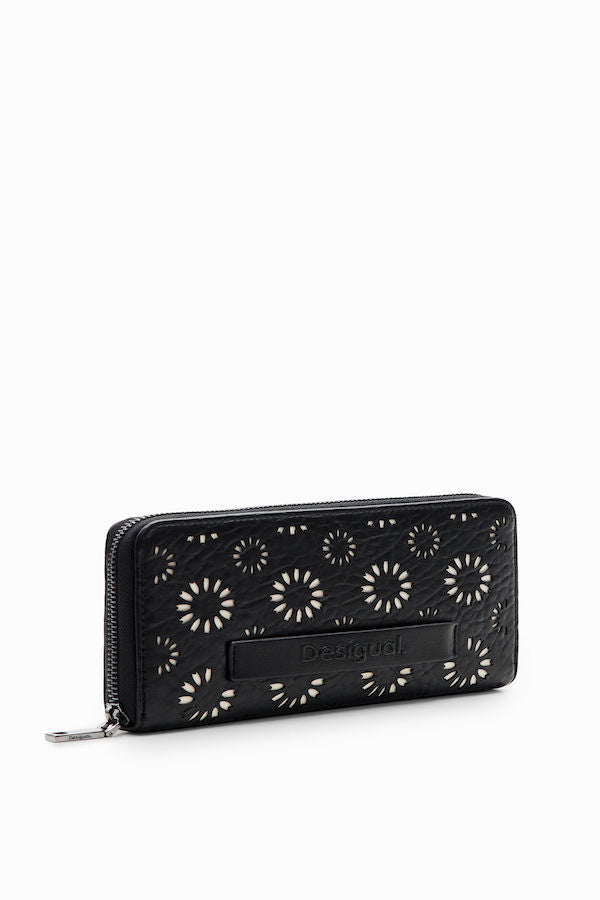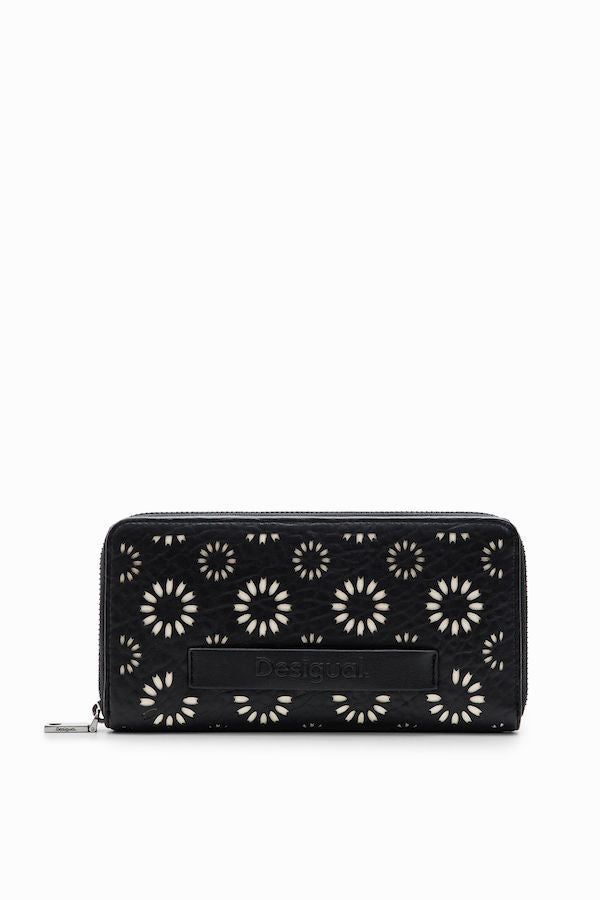 Portefeuille rectangulaire de la marque Desigual 23WAYP171006 avec fleurs estampillées en relief.