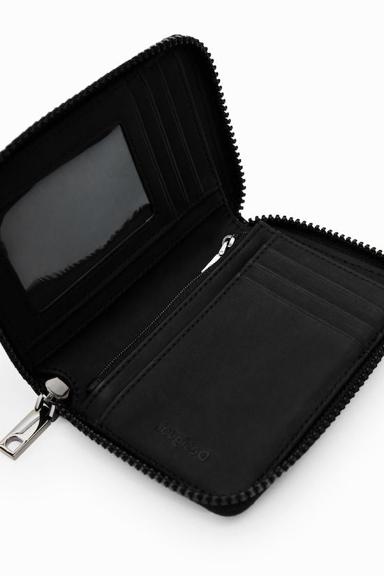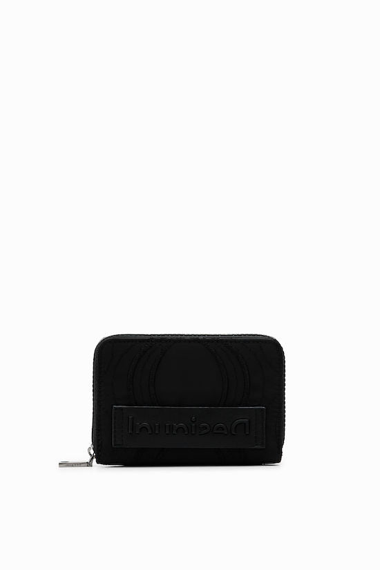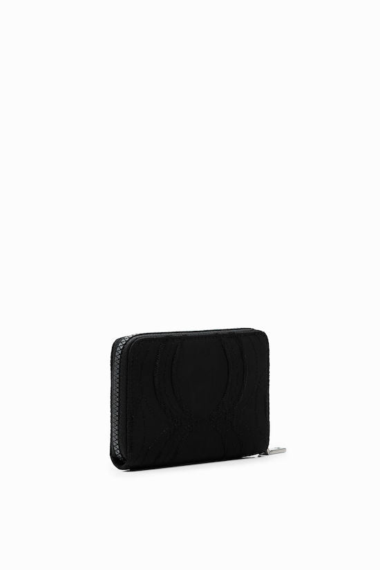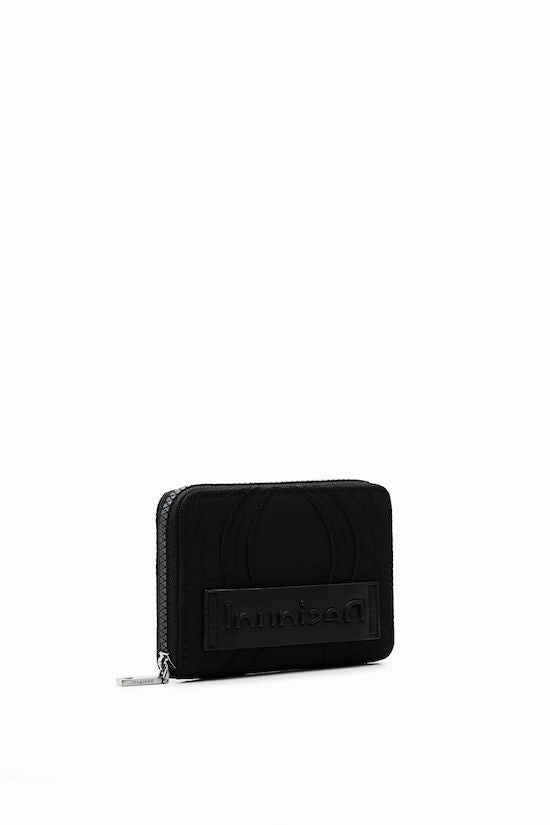 En fibres recyclées noires, le portefeuille 22WAYA07 de la marque Desigual vous propose un motif géométrique en relief et son demi-logo sur le devant.