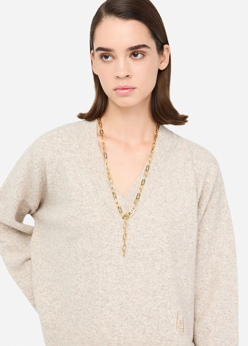 Pull femme beige col V Liu Jo avec volants sur le bas MF5123MA90QP9067 chez - lessculpteurs