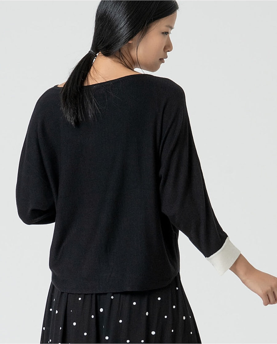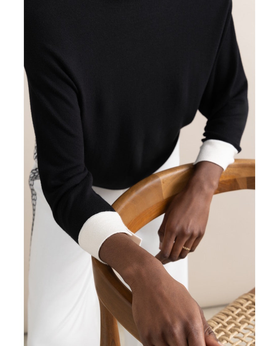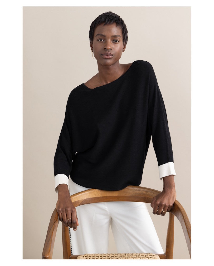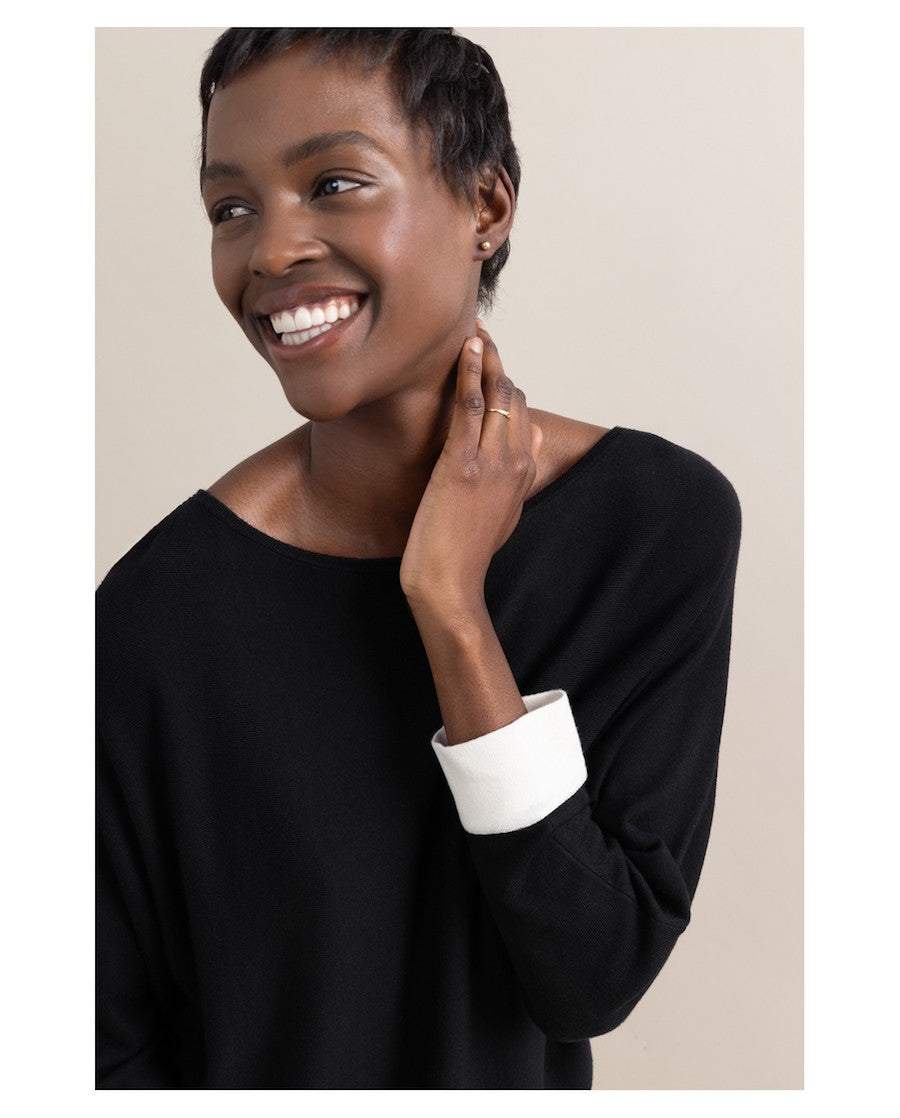 Encolure bateau et manches chauve-souris ce pull tout doux vous est proposé avec les poignets conbtrastés