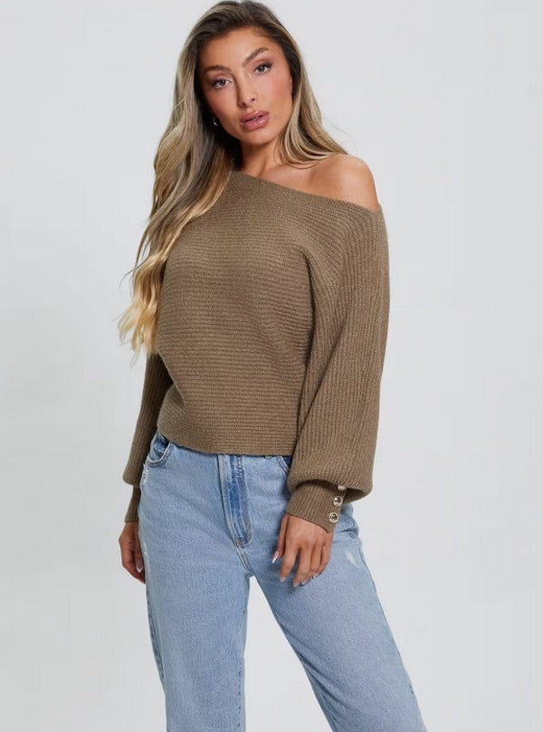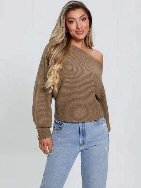 Pull en maille asymétrique de chez Guess W3BR13 Z2QA0 F1GW dans les tons taupe