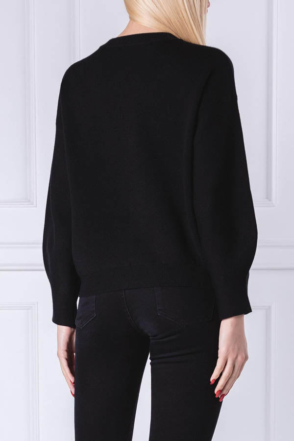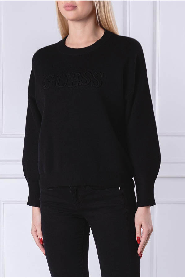 Le pull Guess est muni de longues manches bouffantes, d'un col rond et du logo de la marque en relief.