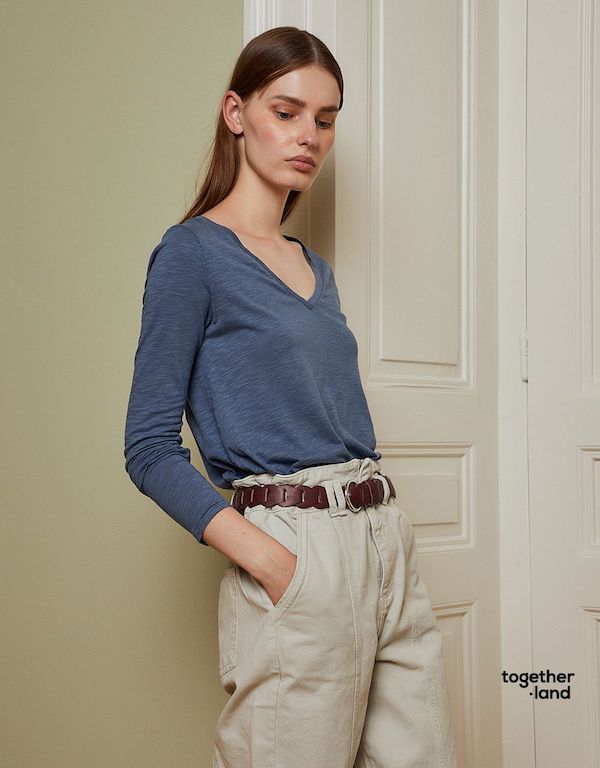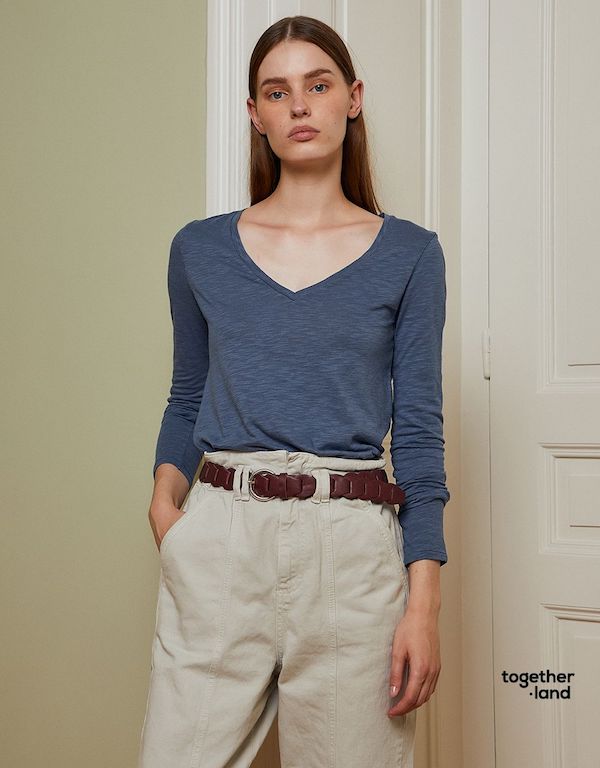 Fluide et léger, le pull BSB vous offre un col en v et des manches longues.