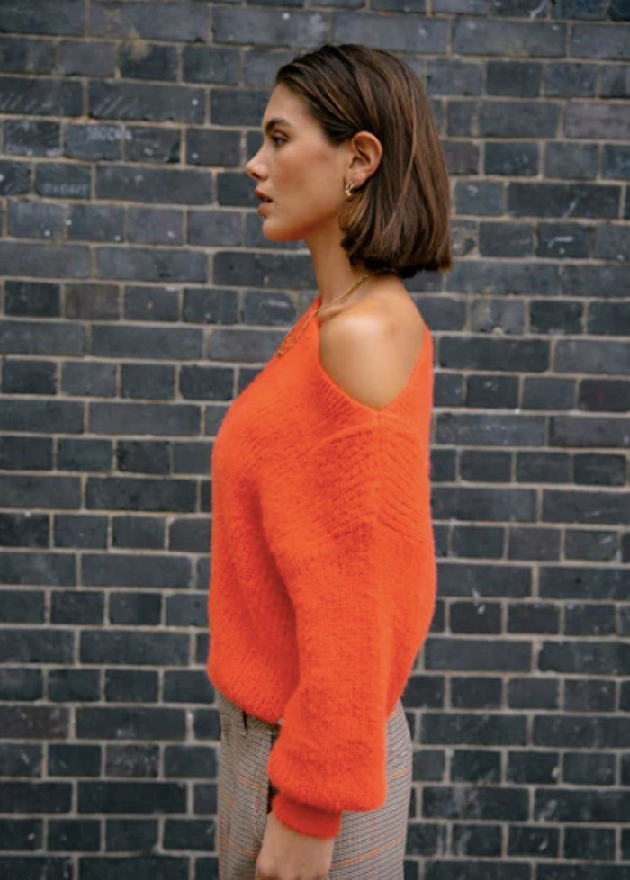 Pull en maille côtelée Freeman T Porter mandarine modèle Peria Rib