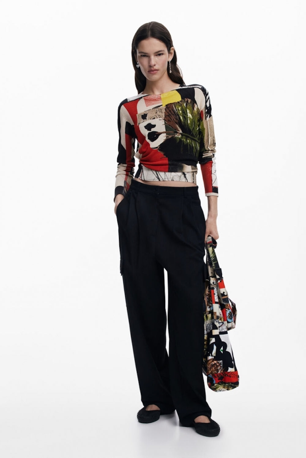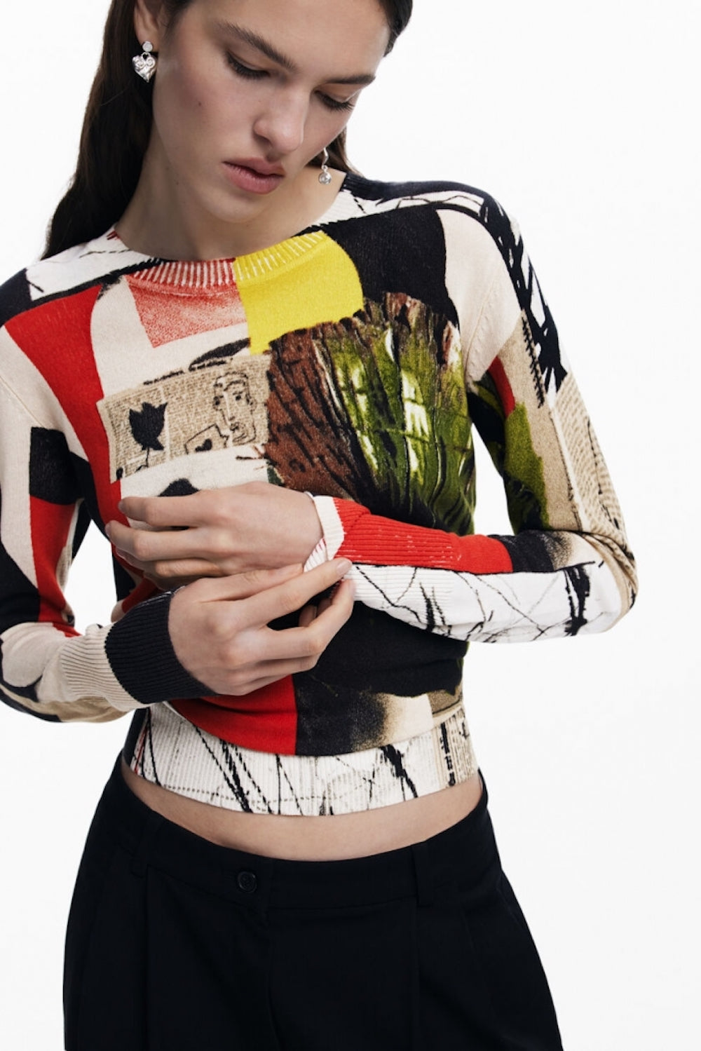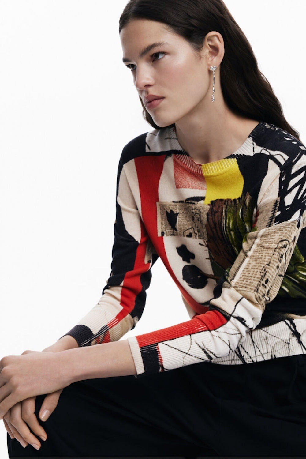 Pull en maille fine imprimée style collage dessiné par mr Christian Lacroix pour la ligne Desigual