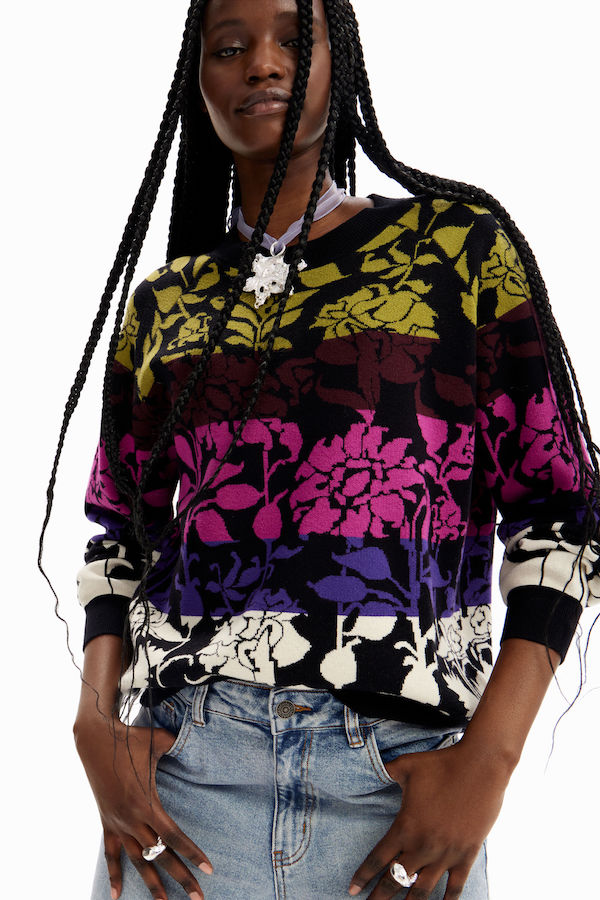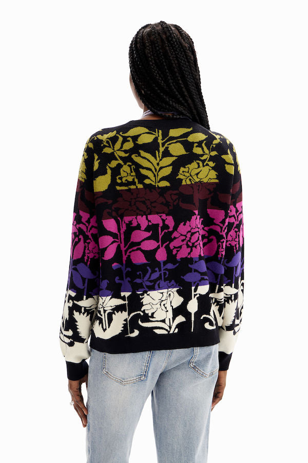 Pull Desigual 23WWJF052000 en jacquard avec imprimé de fleurs de différentes couleurs.