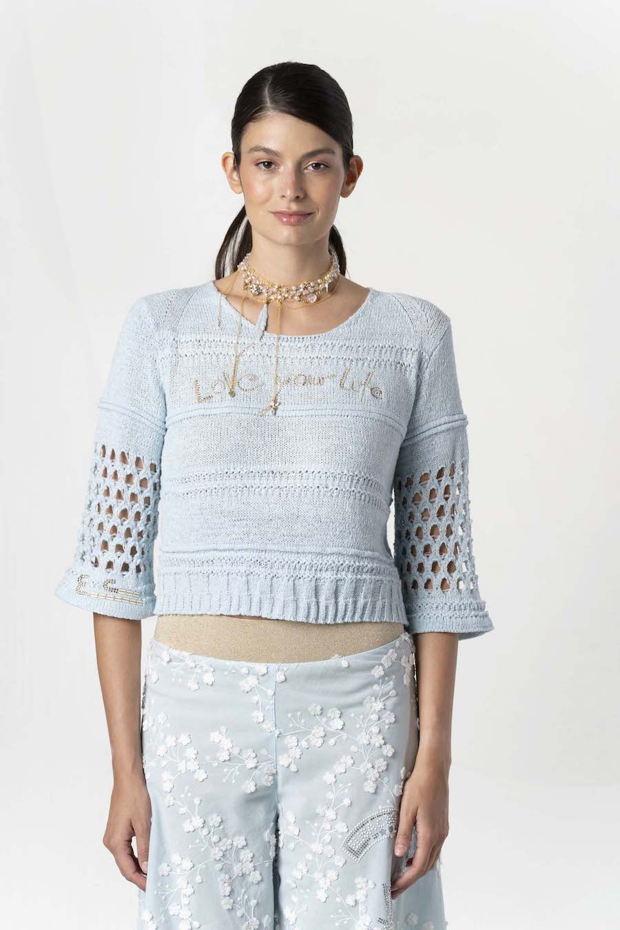 - manches 3/4 ajourées