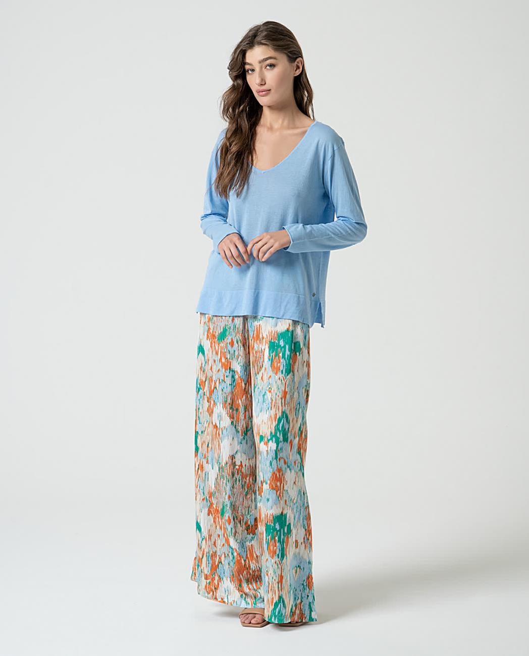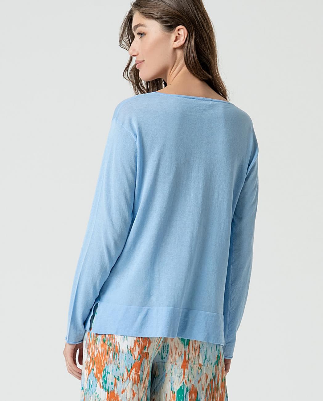Modèle très léger et fluide bleu ciel avec col V et manches longues