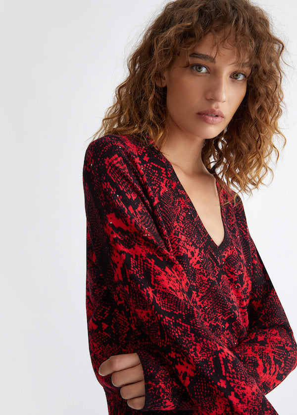 Très doux et agréable ce pull imprimé python avec coeur all over vous est présenté en manches longues et finitions bords côtes