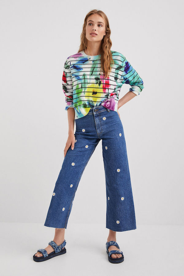 Raffiné avec son imprimé de fleurs façon tie and dye et ses rayures, le pull Desigual est muni de manches longues.