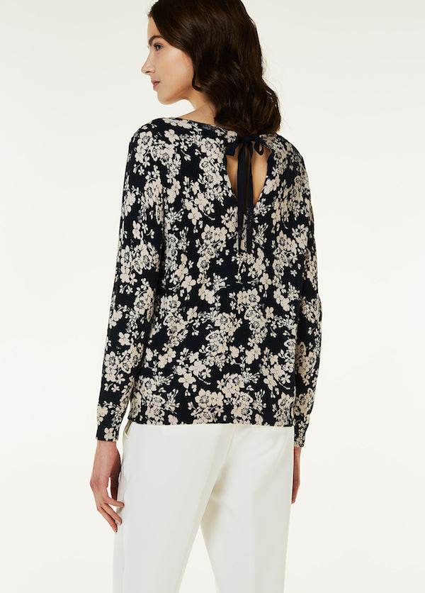 Avec sa matière douce et légère, son imprimé floral, son col bateau, le pull Liu Jo se portera aussi bien sur un jean ou une jupe. Pour sa touche glamour, il possède une découpe dans le dos avec un ruban à nouer.