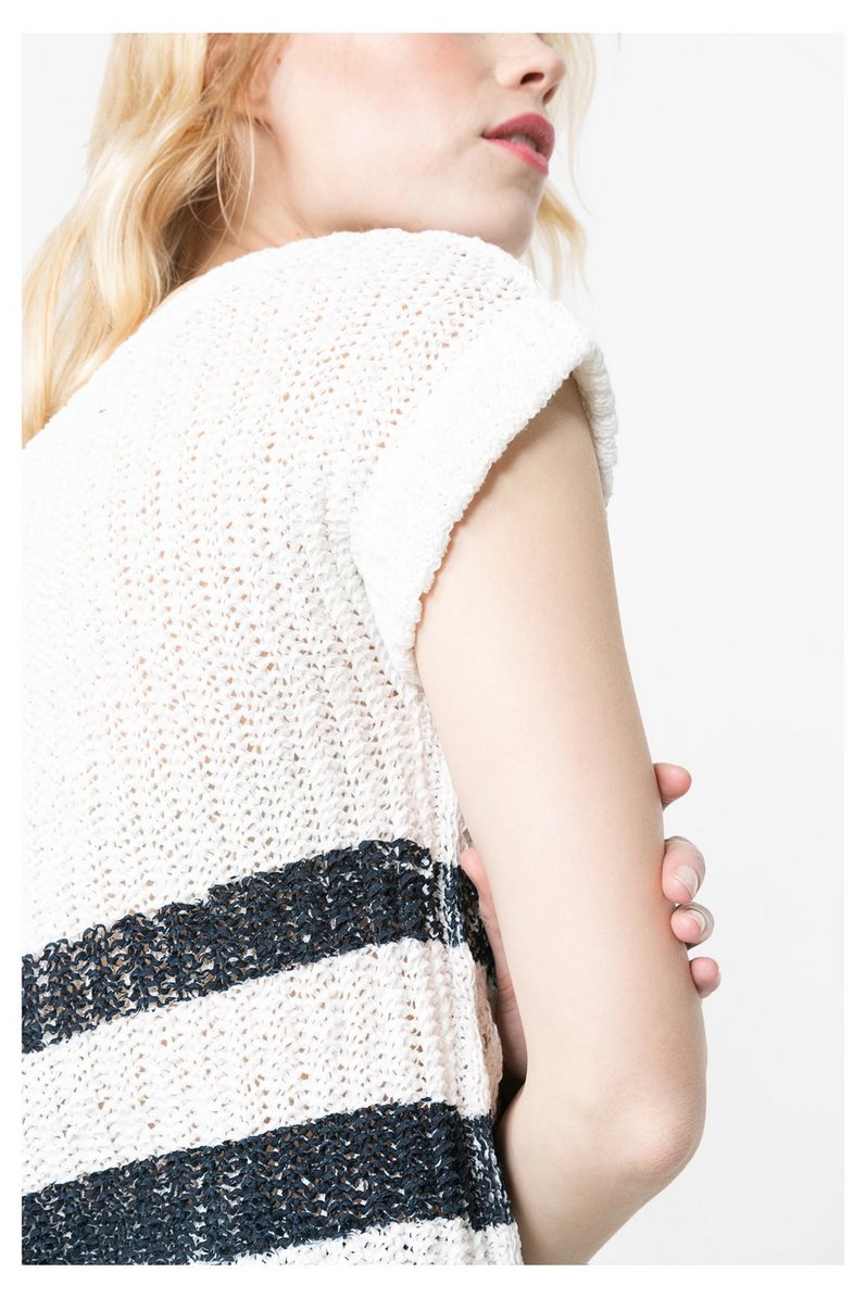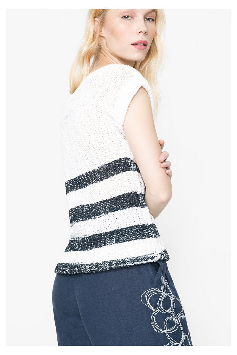 Le pull Desigual 61J 21C3 Demetria dispose de petites manches courtes avec finition bord côte dans l'encolure bateau et à la base.