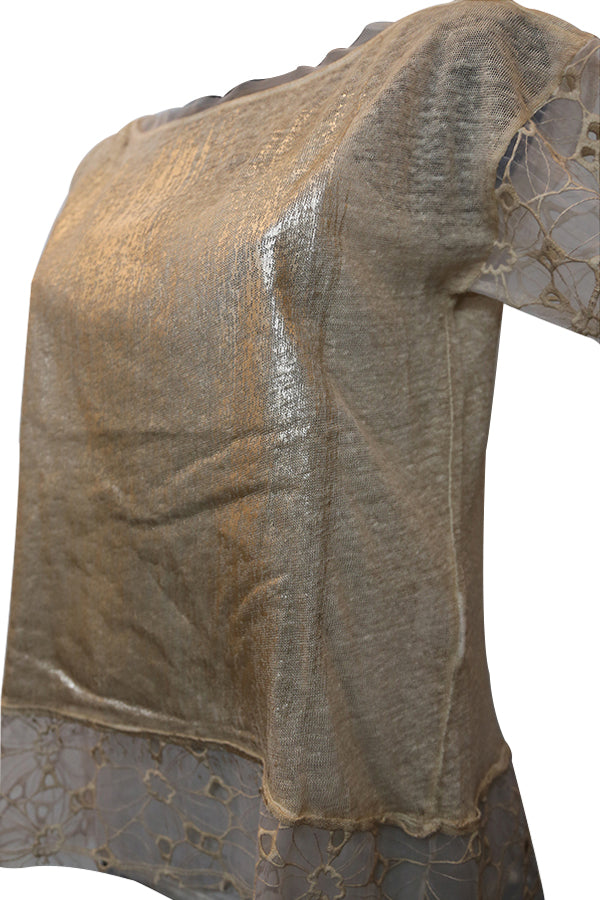 Un jersey maille en mélange de matière l'avant du pull Nana Nucci NI800 est en polyamide avec floquage doré et au dos un jersey en lin.