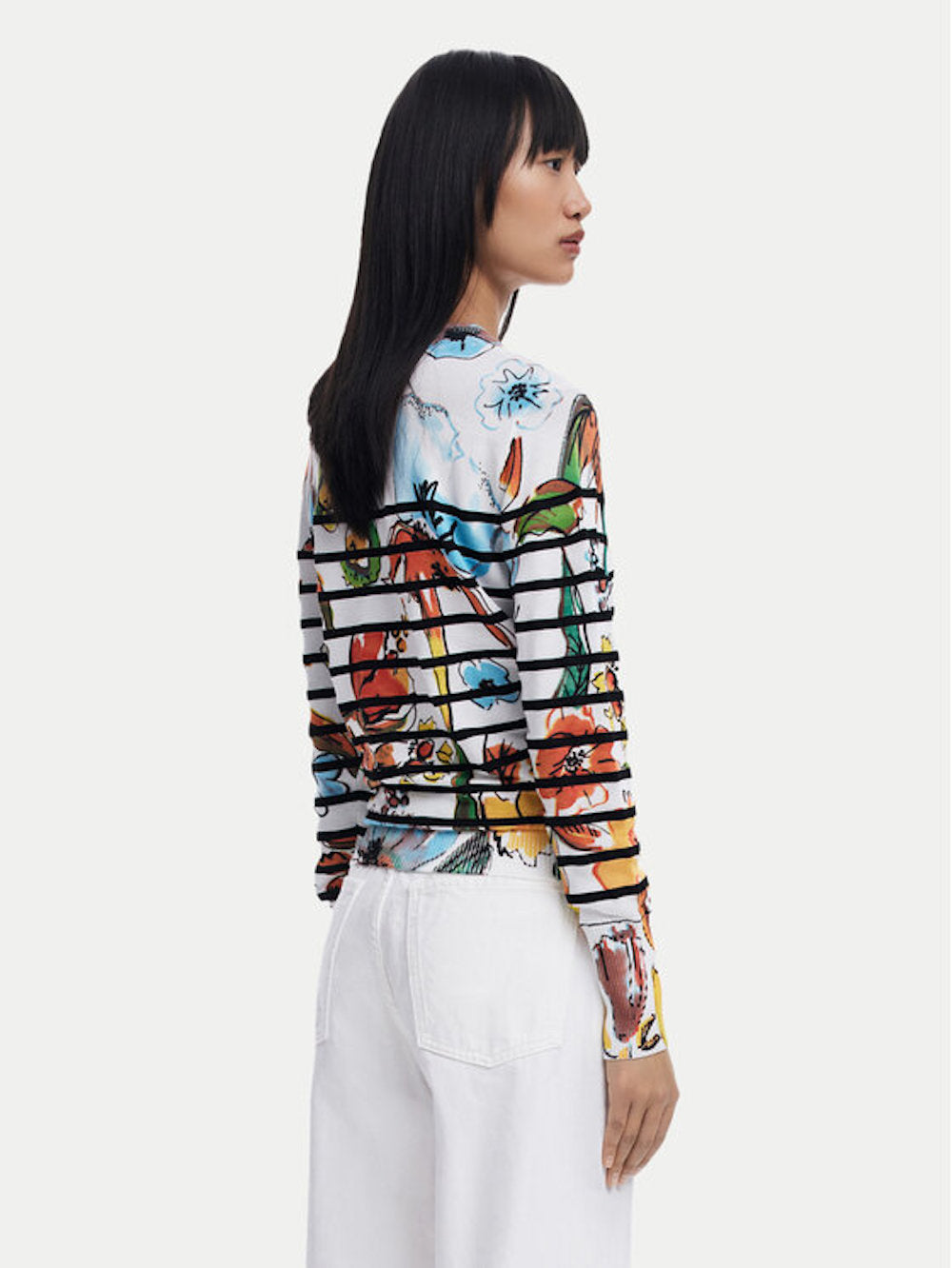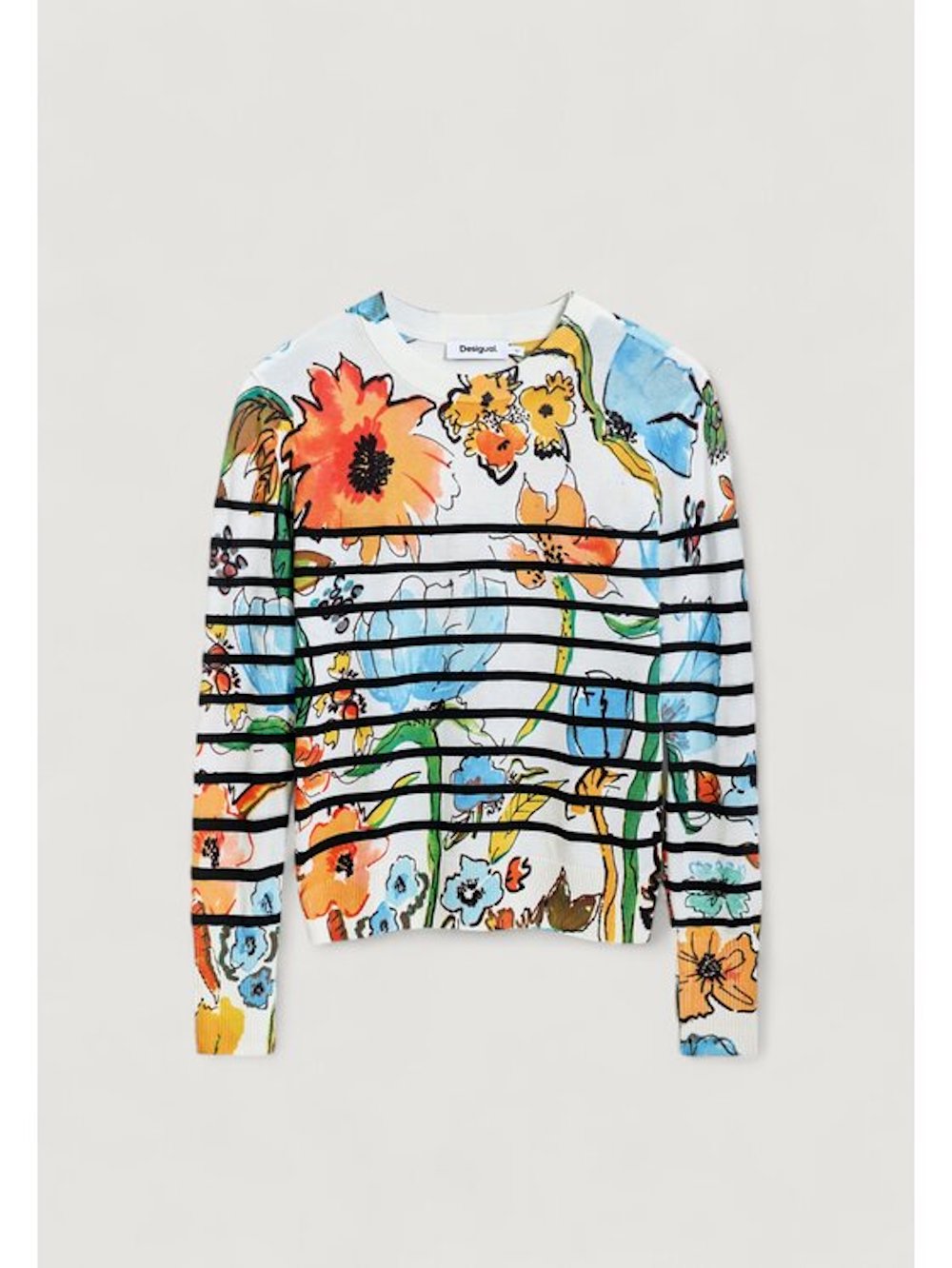 Joli pull rayé et floral de la marque Desigual 25SWJF21 1001