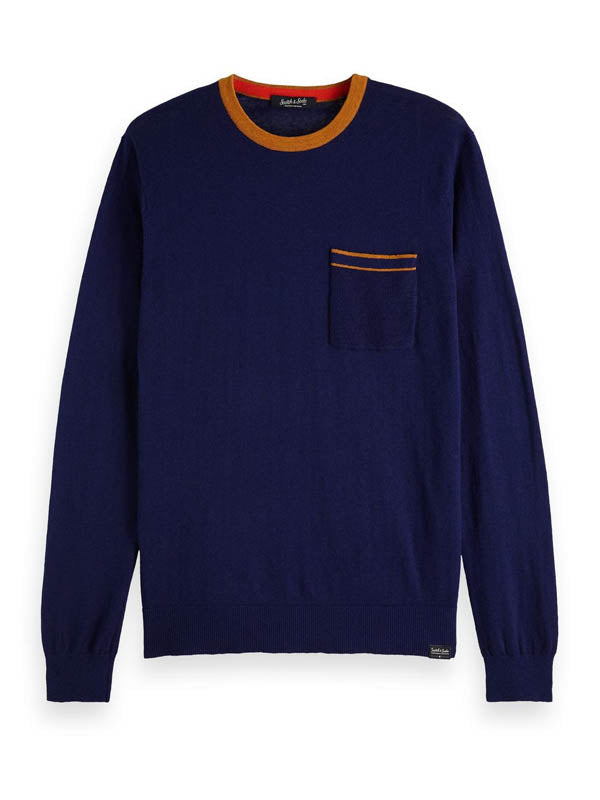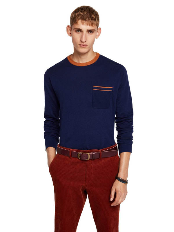 Sur un jean ou un pantalon, le pull Scotch and Soda se portera à toutes occasions! Il possède des manches longues, un col rond contrastant et une poche poitrine.