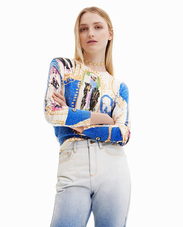 Référence Pullover femme imprimé Ayala Desigual 22WWJFAM 1000