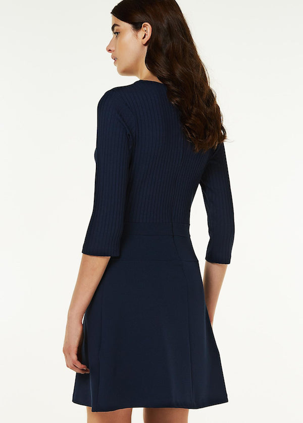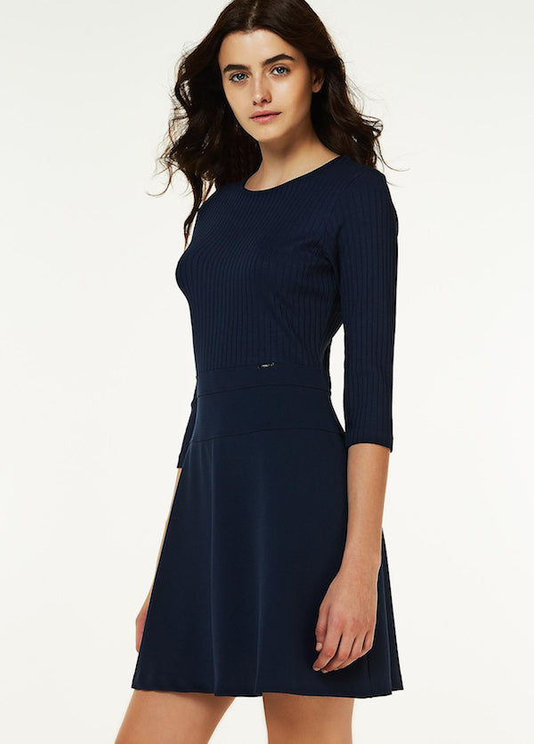 Robe Liu Jo F67143J9940 ABNOBA ajustée et évasée en jersey côtelé stretch, manches 3/4, encolure ronde et fermeture au dos par zip invisible.
