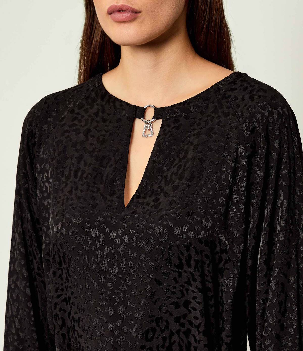 Offrez vous cette superbe Robe animalier Liu Jo avec son petit bijoux intégré au col