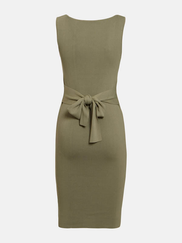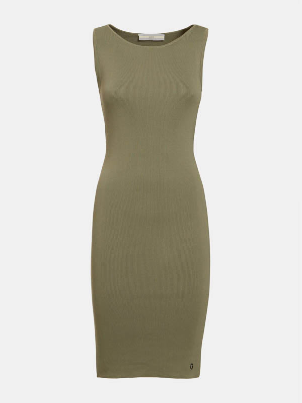 La robe Annie signée Guess est en maille lisse et possède un col arrondi et elle est sans manches.