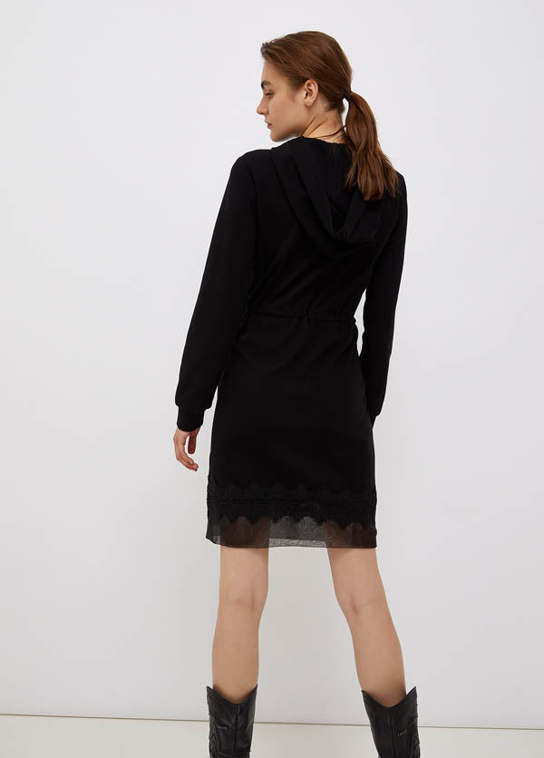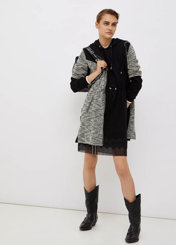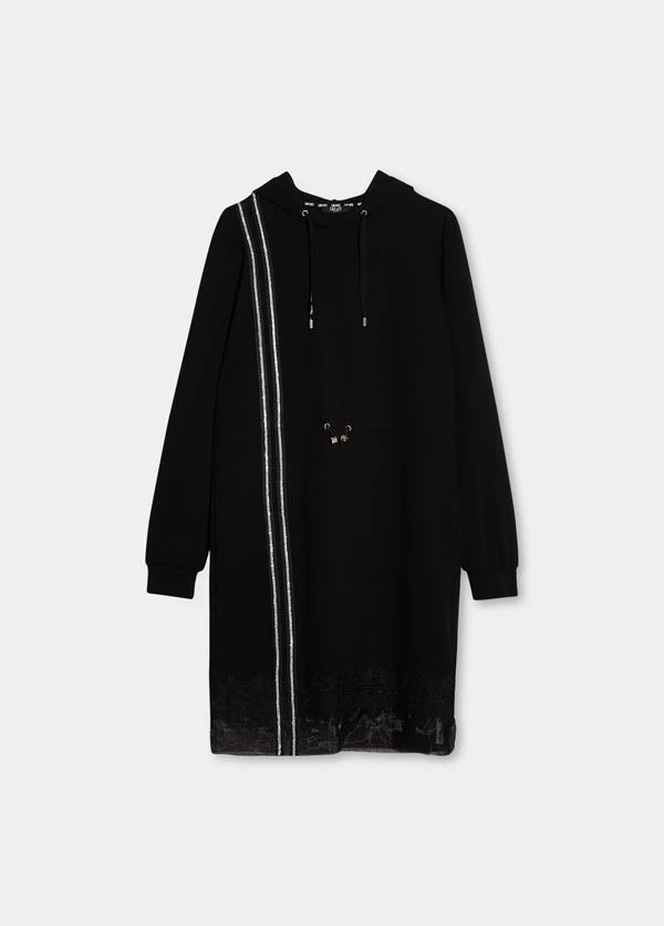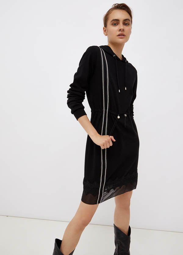 Confortable et agréable à porter, la robe Liu Jo sport possède une capuche avec cordon de serrage, des manches longues, une bas en organza et 2 bandes strassées.