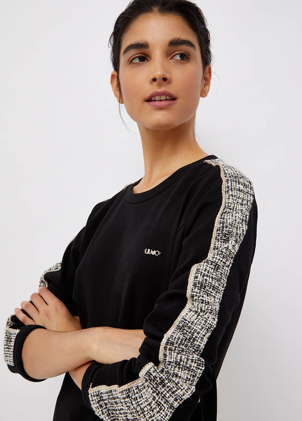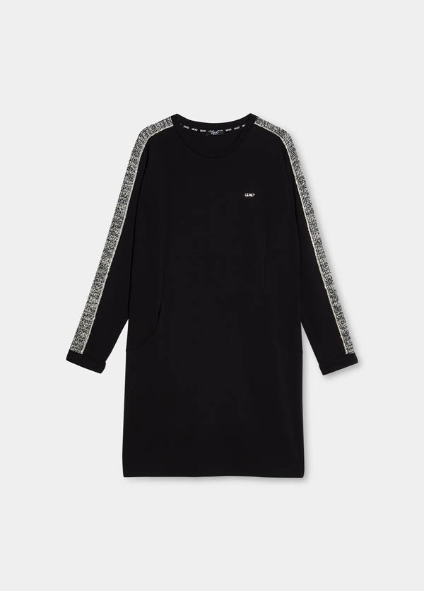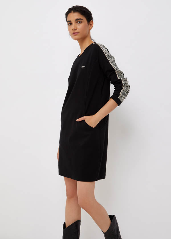 En coton, la robe Liu Jo est munie de manches longues rehaussées d'une bande imprimé et ornée de strass et d'un col rond.