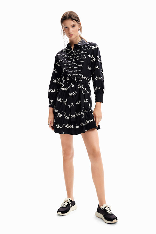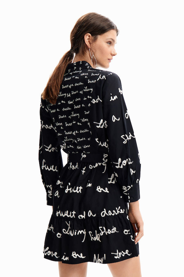 Cette robe Desigual vous est proposé avec une ceinture amovible et un imprimé lettres original