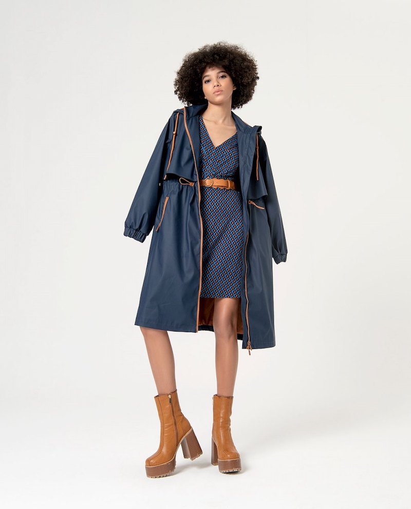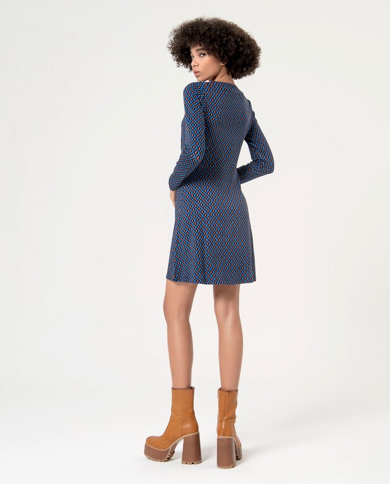 Col V et Imprimé losanges et coupe appuyée à la taille