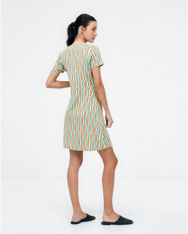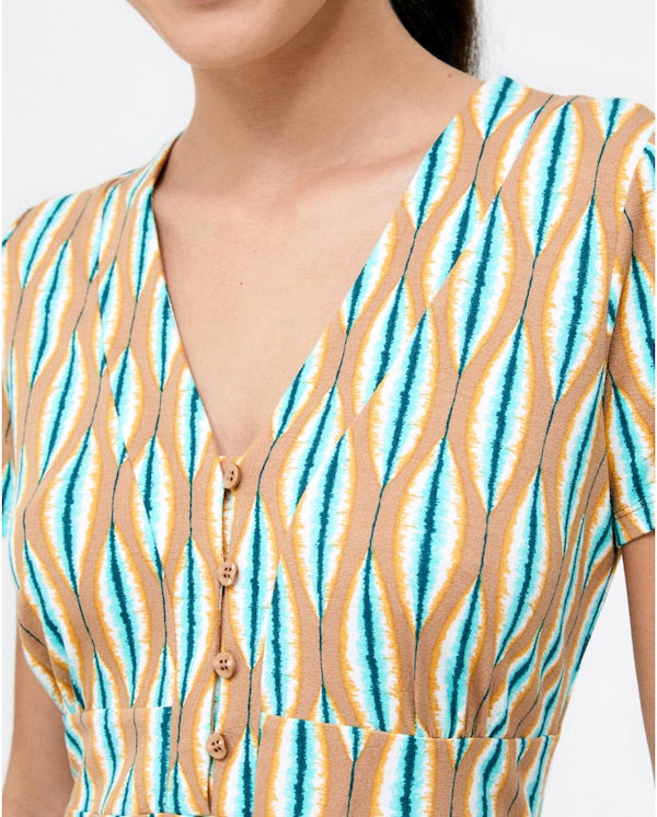 Robe courte col en v à manches courtes imprimée SURKANA 513BAPO717 05