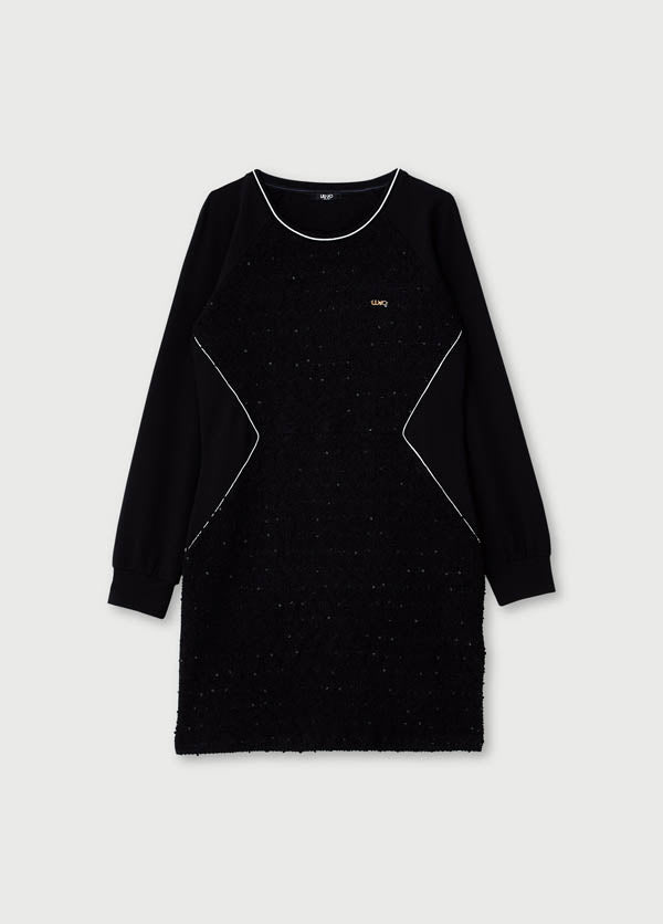 La robe Liu Jo est munie de manches longues, d'un col arrondi, et de liserés contrastants.
