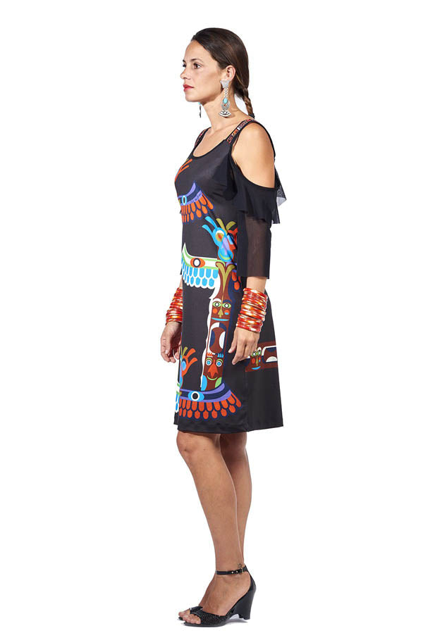 Avec son imprimé coloré dédié aux totems indiens, Save the Queen signe l'originalité avec sa robe courte.