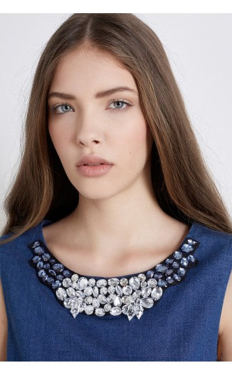 Le denim de chez Liu JO devient ÉLÉGANT et CHIC quand la toile denim est enrichie par les applications bijou qui apportent une touche éclectique à cette robe. Portez-la avec des sandales à talons plats, pour une occasion et aussi tous les jours, et changez d'accessoire pour prendre l'apéritif avec des copines ou sortir après dîner.