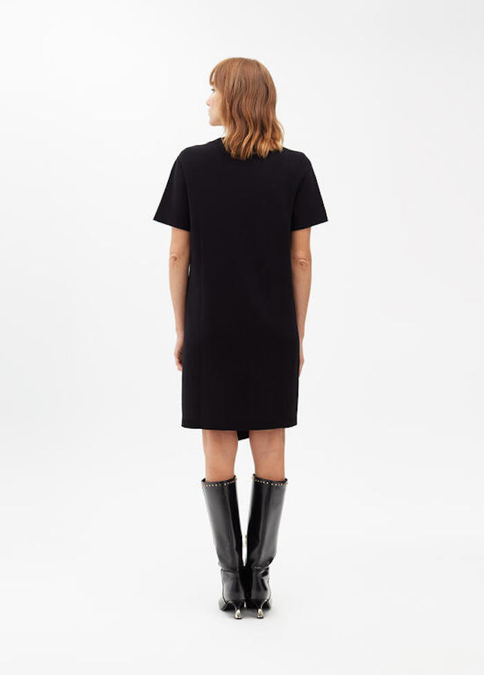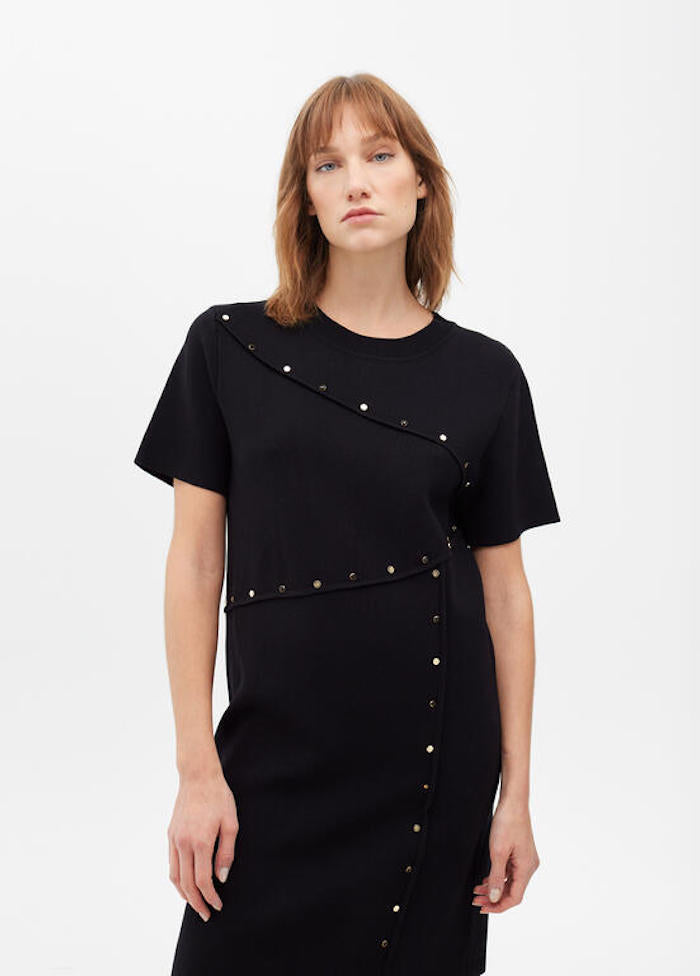 Colorie noir et petit clous sur l'avant pour cette robe ajustée à col rond et manches courtes.