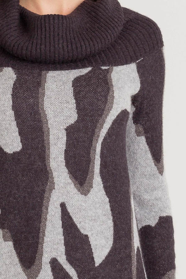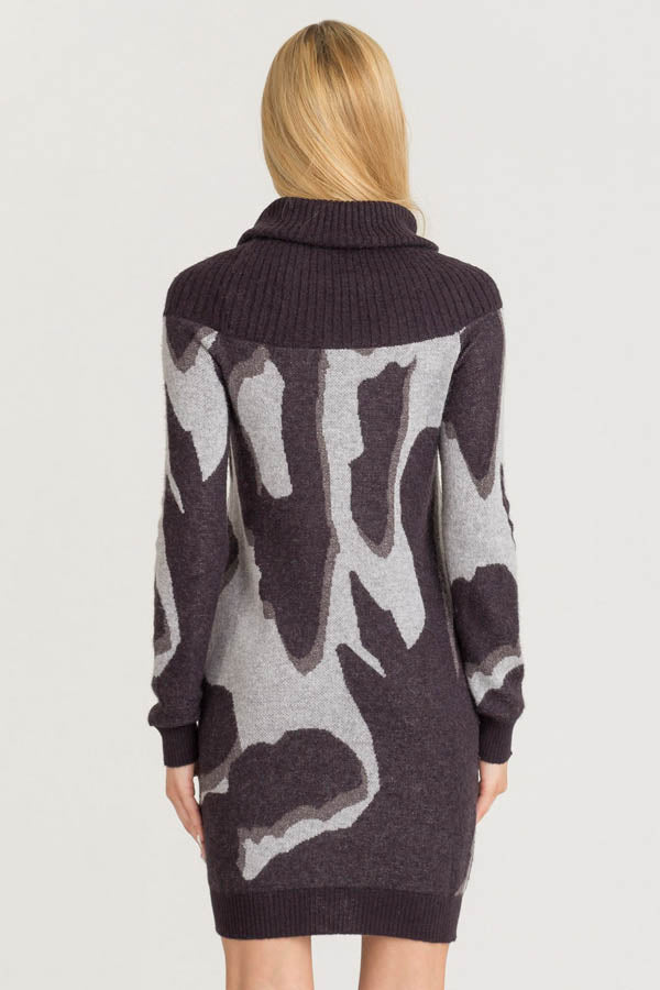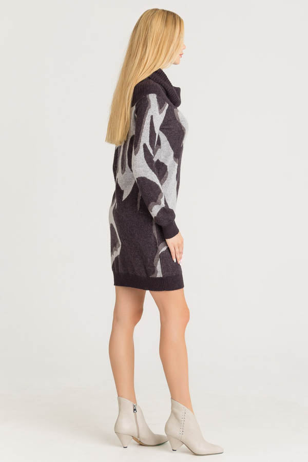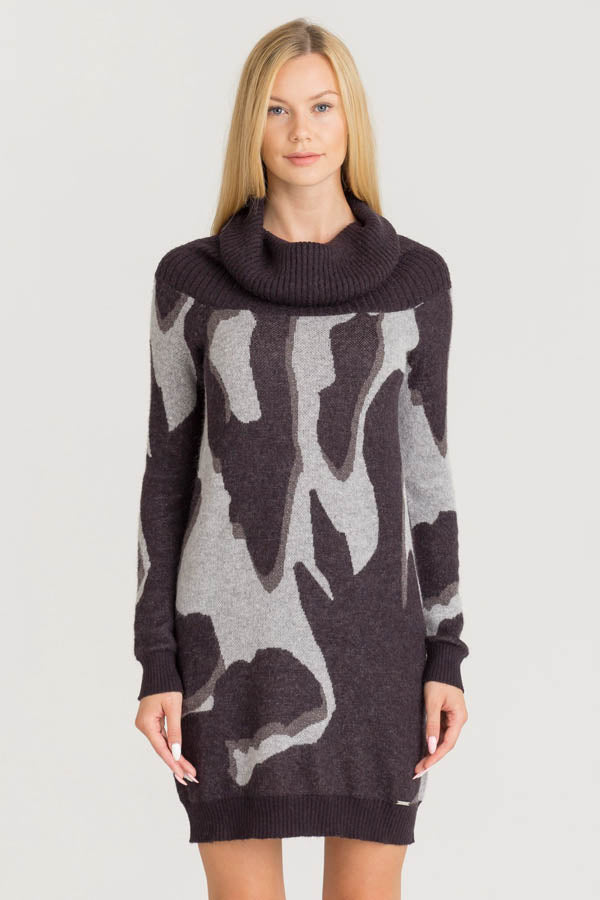 Avec son imprimé camouflage gris et noir, la robe Liu Jo possède des manches longues, un col roulé large, et finition côtelée.