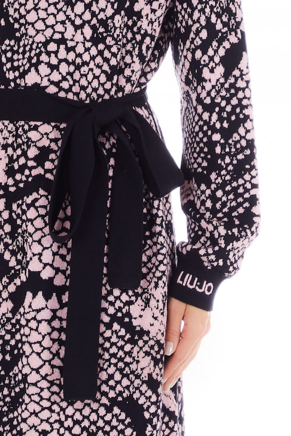 Robe en maille de la marque Italienne Liu Jo UF3033DS00778522 imprimé python rose, finitions des manches jacquart marqué Liu Jo