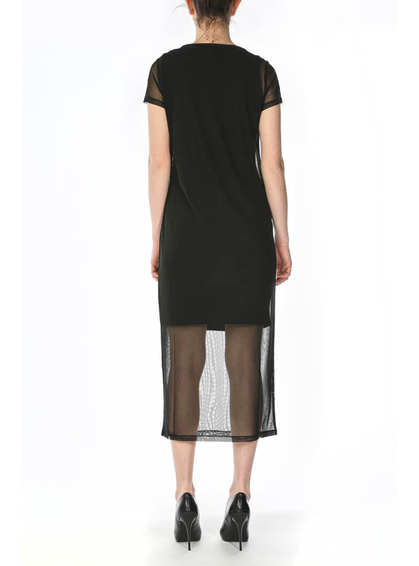 Avec son voile en tulle, la robe Liu Jo est munie de manches courtes, du logo imprimé en contraste à la base et un col en v.
