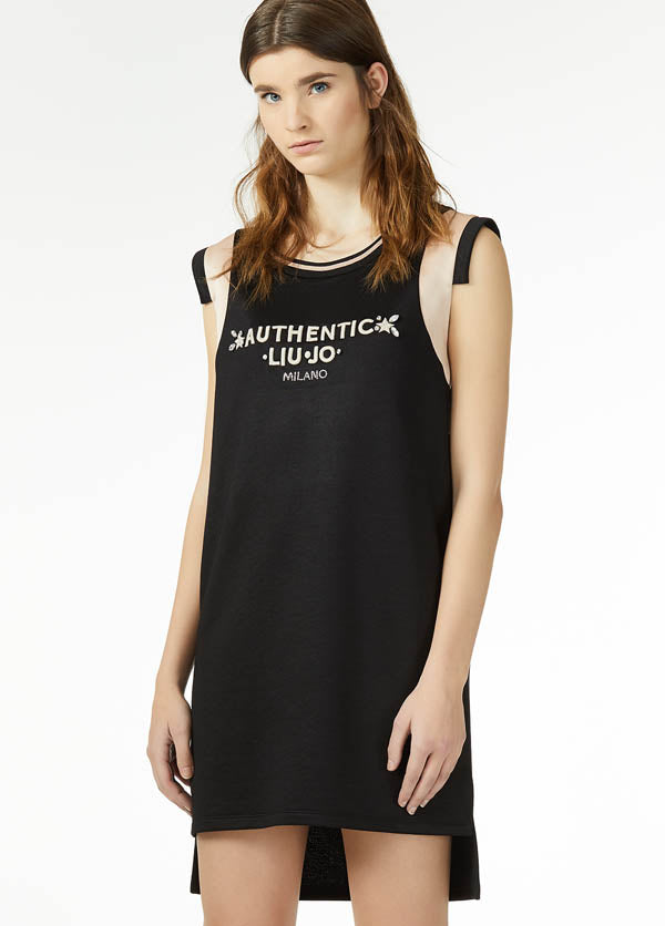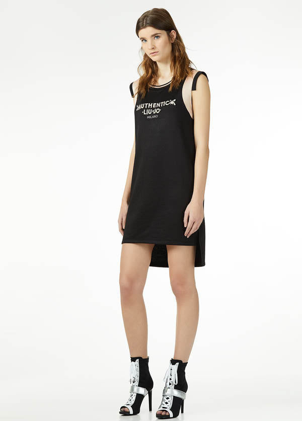 La robe Liu Jo est munie de manches gabariées, d'un col arrondi et d'une base plus longue au dos, et le logo imprimé sur le devant