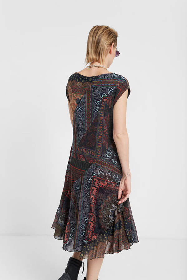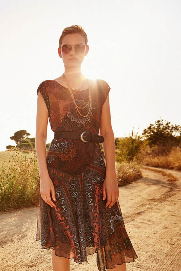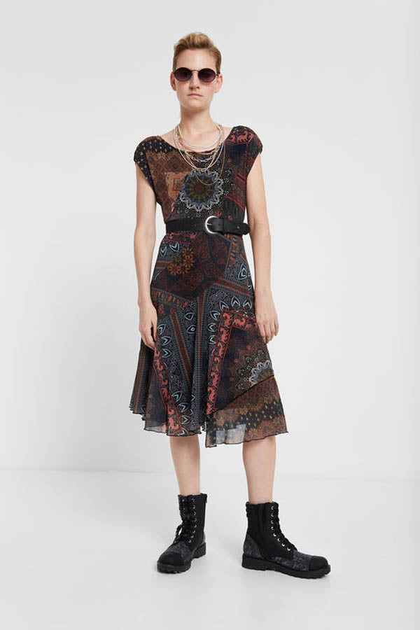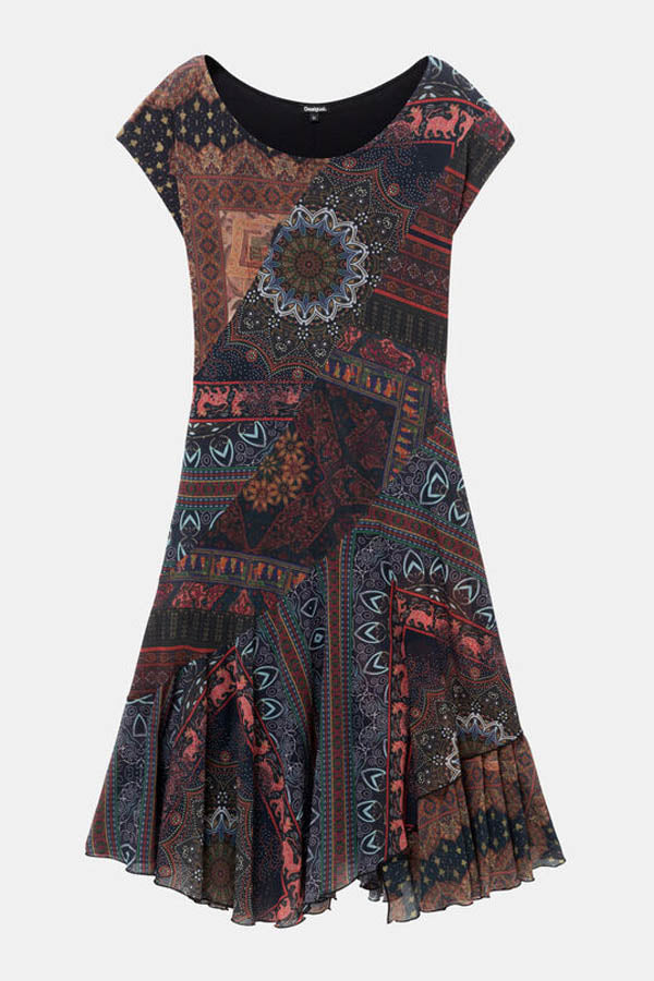 Élégante, fluide et légère, Desigual nous offre un patchwork d'imprimé ethnique aux couleurs automnales.