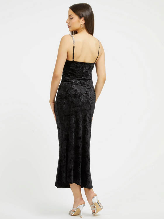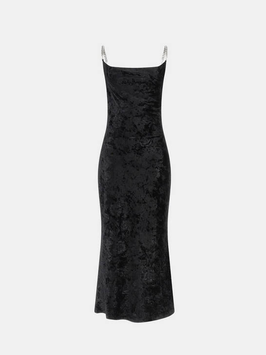 Robe velours imprimé fleurs sans manches , bretelles chaines et fermeture zippée