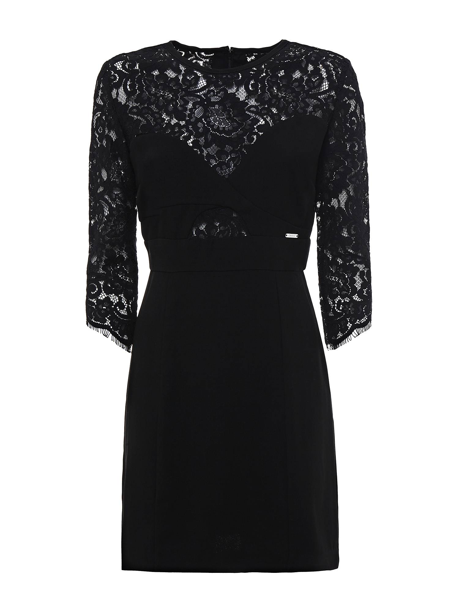 La robe Guess W74K84W8XM0 speranza en tissu fluide avec son col rond ,ses manches 3/4 et sa fermeture dans le dos. Le bustier et les manches sont en dentelles.