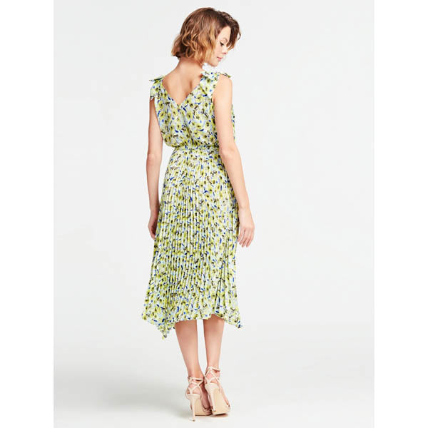 Guess signe le printemps avec sa robe Honey avec un imprimé de fleurs jaunes.