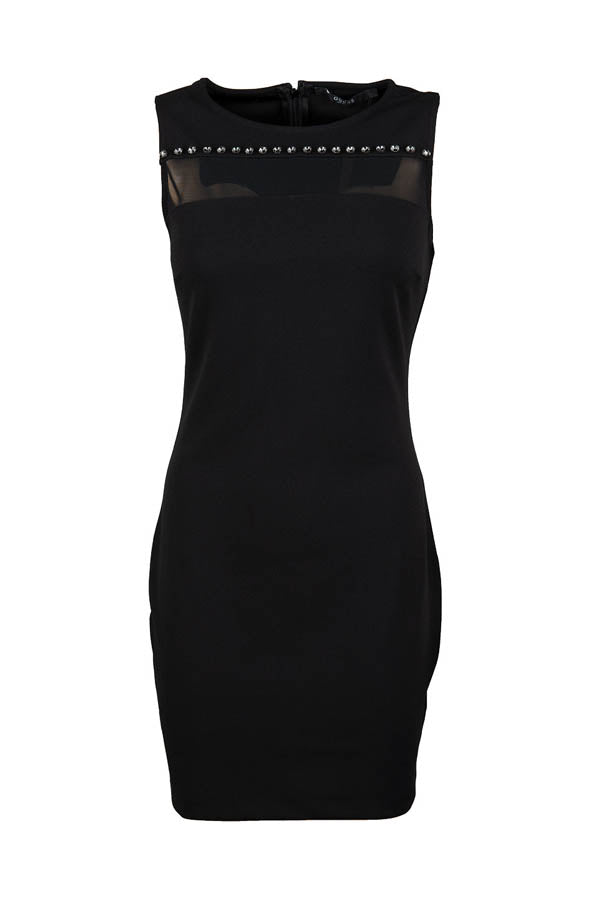 Look casual pour le robe Guess avec un insert transparent et des pierres sur le devant.