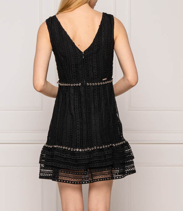 La robe en dentelle Guess est munie d'une base volantée, d'une coupe ajustée et elle est ornée d'oeillets métalliques argentés.