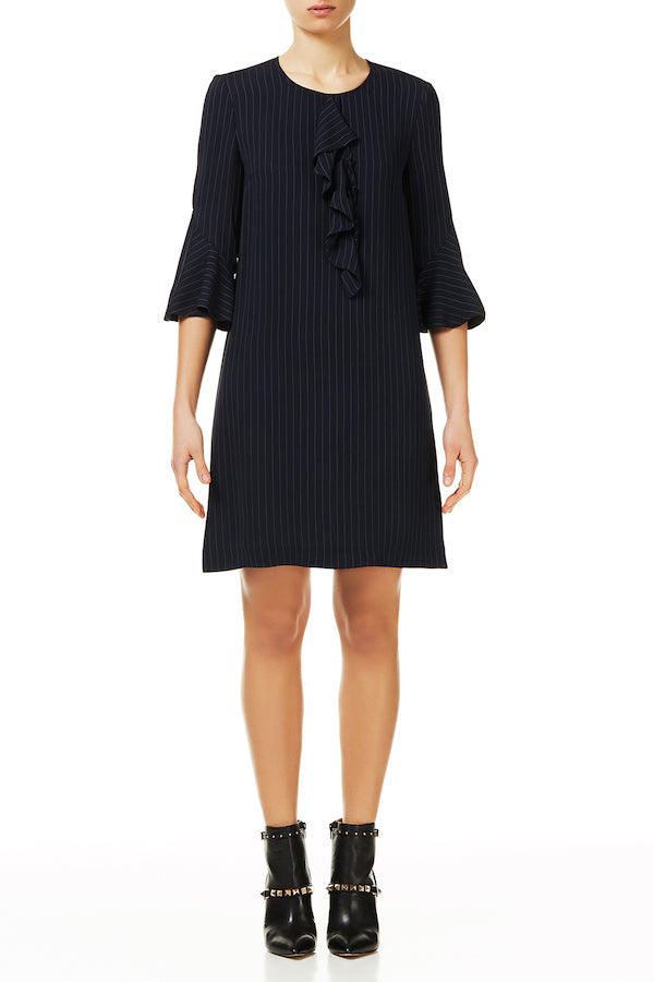 Robe Liu Jo dans la ligne Collection C67383T1931⤼ avec manches mi longue et rayure tennis, très élégante et raffinée avec ses petits volants.