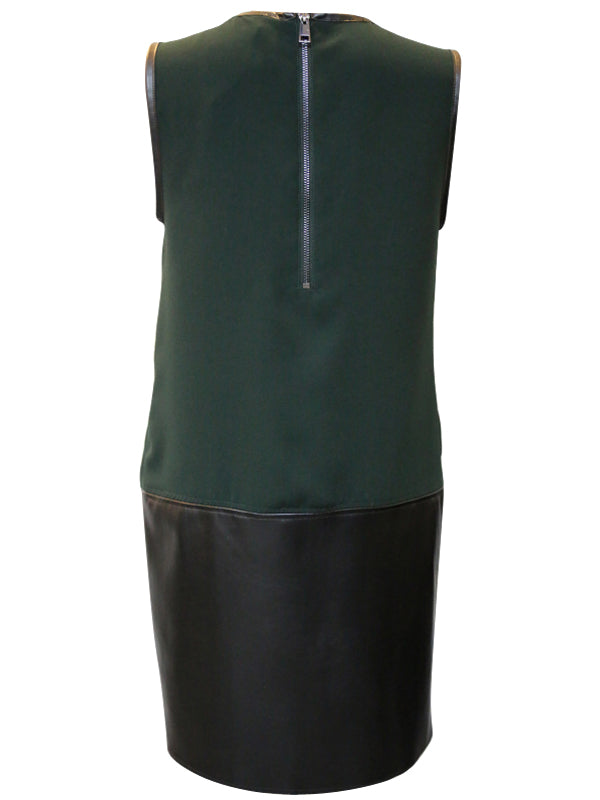 La robe LIU JO nous propose un buste en polyester avec un col rond et des emmanchures bordés de cuir synthétique, dans le décolleté une ouverture pour une touche GLAM. A l'arrière une fermeture éclair apparente.