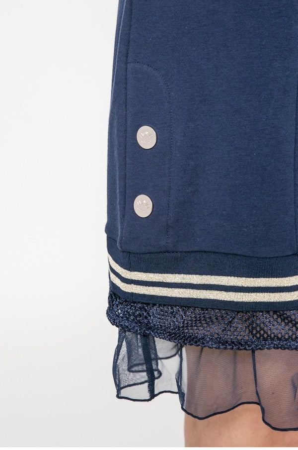 Robe en moleton très agréable avec petite partie résille au niveau du décoletté, finition en filet sur le bas et petits boutons pour réhausser.