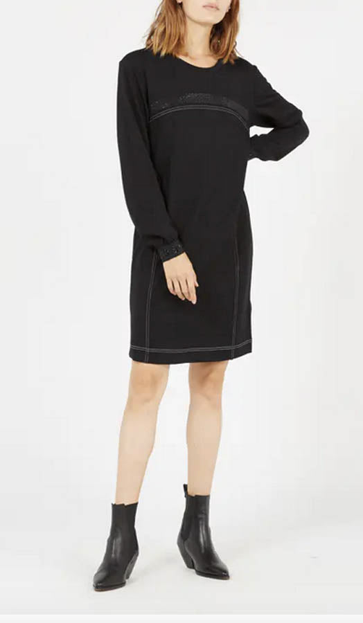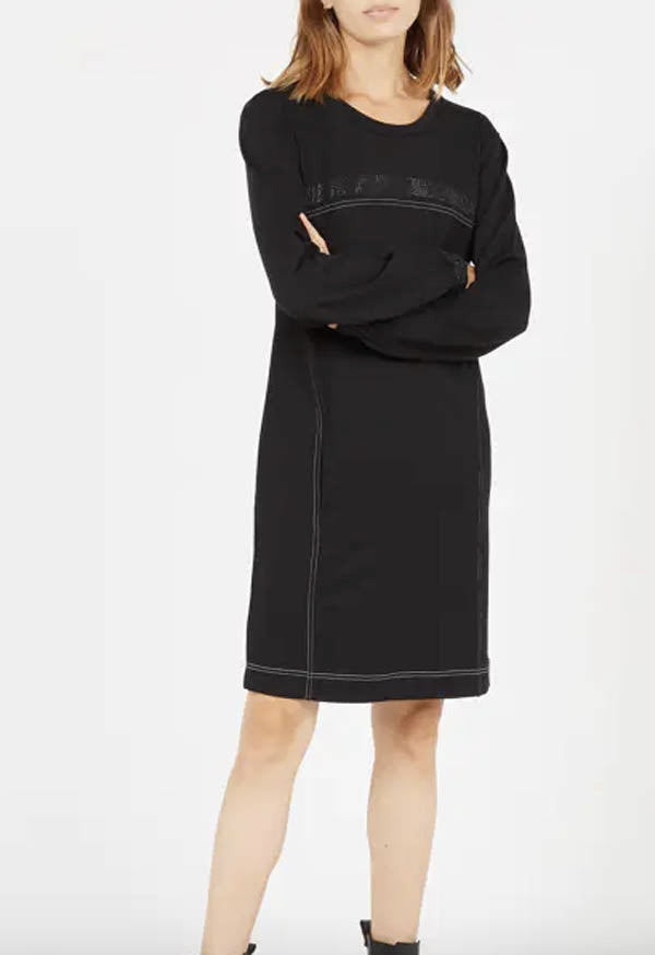 Élégante et sportive à la fois, la robe Liu Jo nous offre des coutures apparentes, et une bande strassée sur la poitrine.
