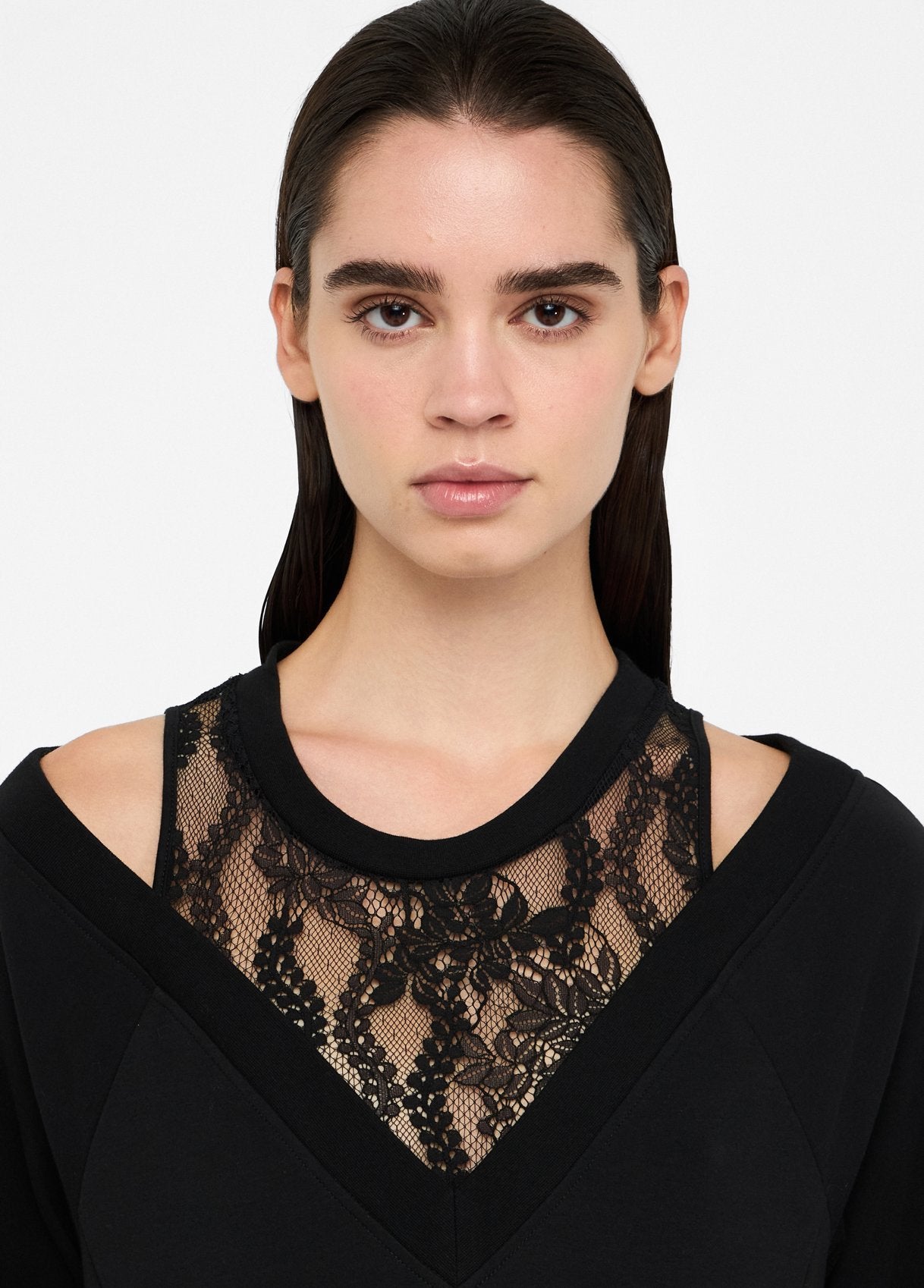 Robe juste au dessus du genoux de la marque Liu Jo avec mélange de molleton stretch et de dentelle