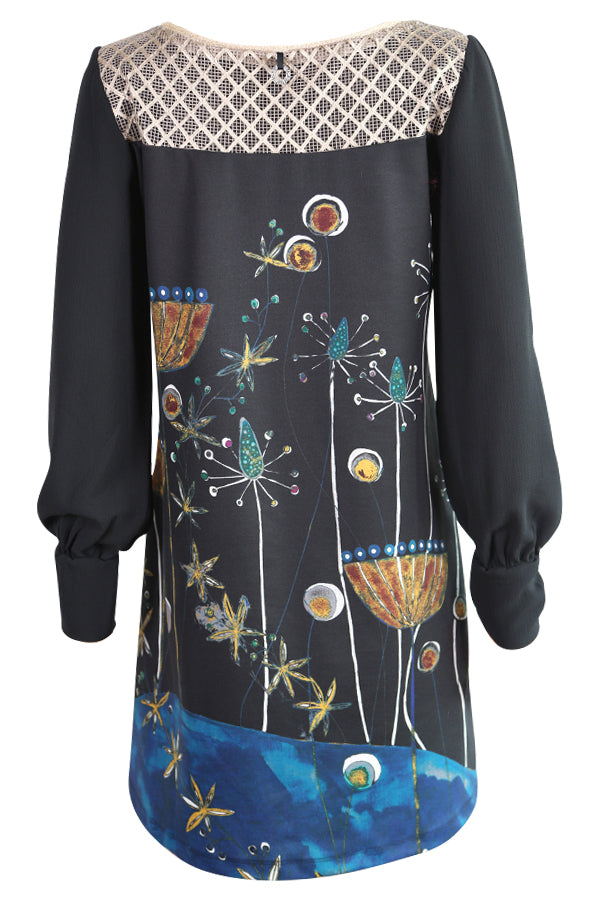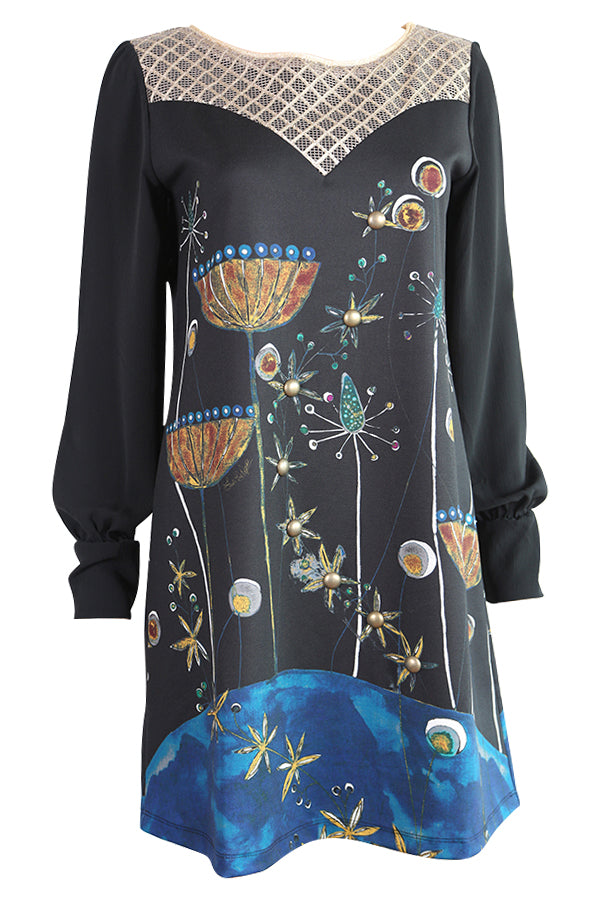 Robe Save the Queen 4099 manches longues en mousseline épaisse et fluide avec application de boutons métalliques et dentelles fine.